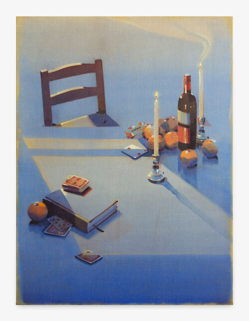 The artist often sets her scenes beneath the blue haze of dusk, the hush of snowfall, or the charged stillness of nighttime. They feel suspended in liminal space, where the familiar slips toward the uncanny. In “Towards Silence,” her solo exhibition currently on view at Montreal’s Duran Contemporain, for instance, Paterok turns to transitional moments. She renders her intimate interiors—kitchens, studios, tabletops—in muted tones.