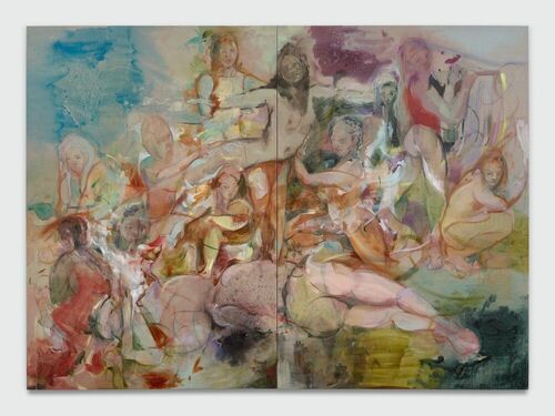 Emerging artist Eleanor Johnson’s large-scale paintings use a layered, kinetic process, as vivid corporeal forms shift and recombine across the surface. Drawing on Baroque painting, particularly the tumbling compositions of Peter Paul Rubens, she brings a sense of movement while reconsidering the body through a contemporary perspective on gender and perception.