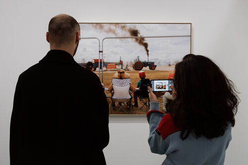 Here, the phone is not the subject—people are. Parr focused on how technology has reshaped posture, attention, and movement, turning a visit to a historic artwork into a brief, screen-based interaction. During the exhibition’s press preview, curator Quentin Bajac described the image as balancing irony with critique, showing how even the most famous painting in the world becomes a backdrop. Towards the end of his career, Parr didn’t fight new technology, but brilliantly embraced its potential as subject matter.