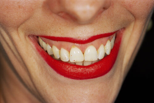 This close-up photograph, taken in Zürich in 1997, also belongs to Parr’s “Common Sense” series. The tight cropping around a painted mouth removes any sense of place or identity. The photograph borrows from the language of advertising, where lips often stand in for glamour. In Parr’s image, however, the mouth is not idealized but filled with teeth marked by yellow stains and smudged red lipstick.