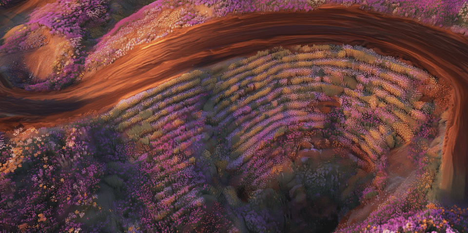 Another key work, After the End (2024), offers a speculative creation story for Australia developed in collaboration with Aboriginal actor and activist Natasha Wanganeen. Presented as a 50,000-year time-lapse film, it traces the arc from ancient First Nations communities through colonisation and resource extraction towards a future shaped by new energy infrastructures. Meanwhile The Great Endeavour imagines the monumental engineering project required to remove carbon dioxide from the atmosphere. These films operate as narrative provocations. Young explains this approach clearly: “Imaginary Worlds aren’t concerned with predicting the future, instead they prepare us for it. Within their fictional streets and speculative landscapes, we rehearse new ways of living, new relationships between humans and machines, between cities and the Earth, between extinction and survival.”