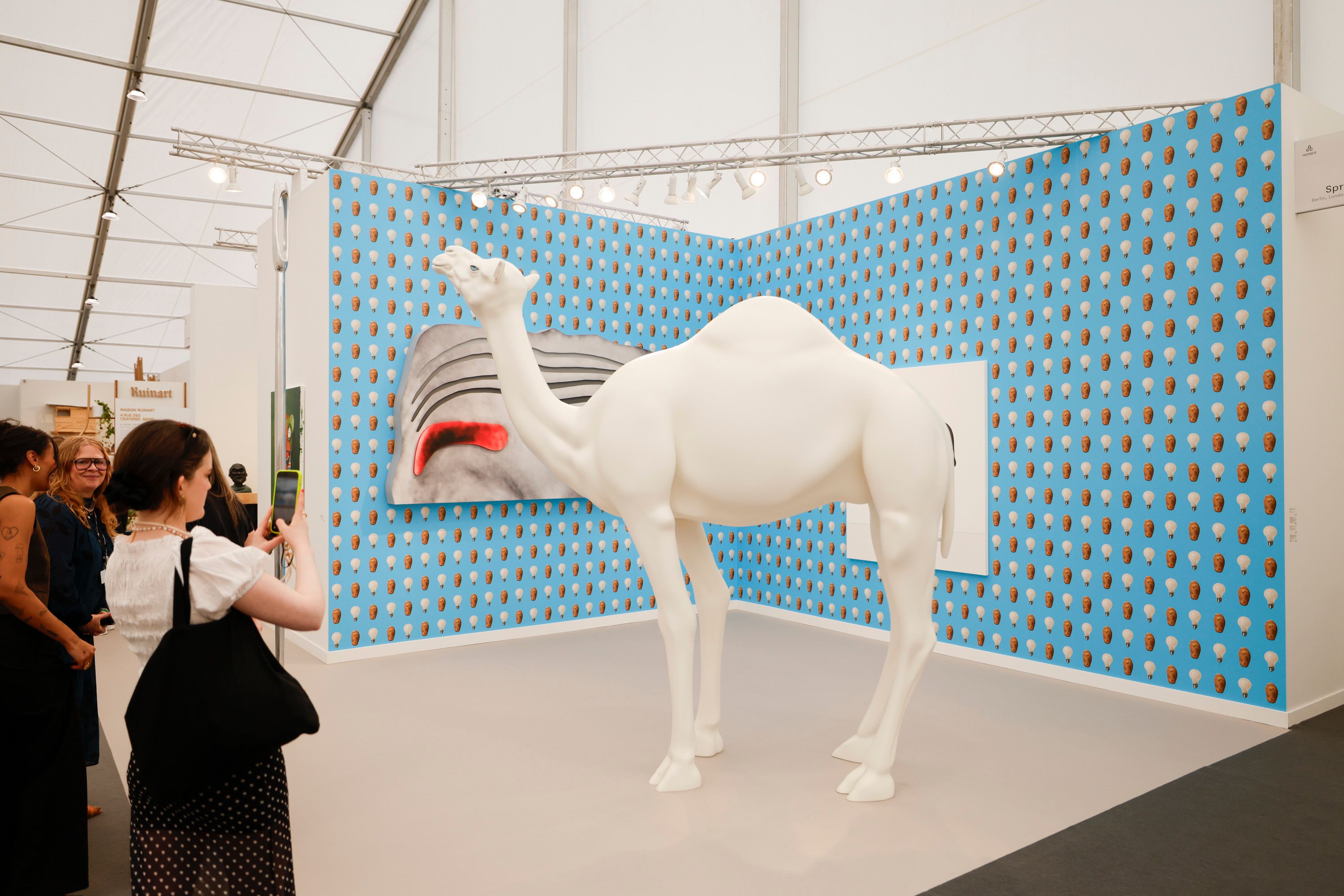 Sprüth Magers’s stand features eye-catching wallpaper and a towering camel by the late Los Angeles legend John Baldessari Carlin Stiehl