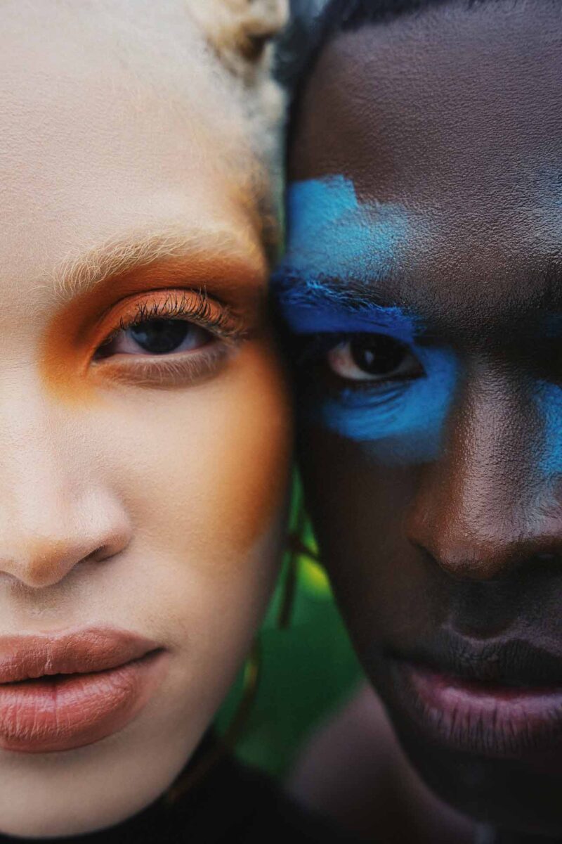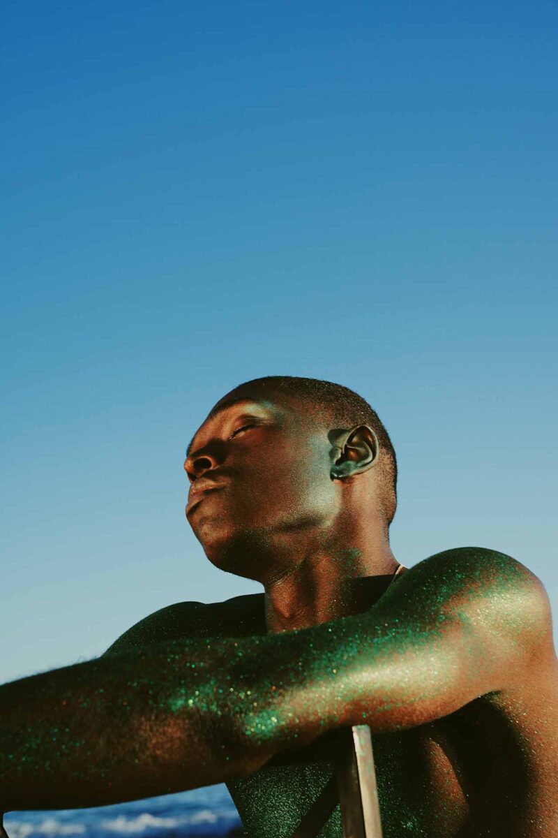 Jordevity is Jordan Diomandé, a photographer and director from Côte d’Ivoire, West Africa. Diomandé was born and raised in Abidjan, and is currently based in Los Angeles, creating work with the aim to “inspire, heal, enlighten and promote the beauty of diversity and kindness.” Several years ago, he made the shift from modelling to photography. Since then, he’s developed a stand-out collection of portraits – driven by the goal of bringing his personal visions to life. The following images are taken from various series, including Earth, Queen & Slim and Trapped in Plain Sight, and are filled with emotion and implied narrative. Diomandé has a masterful command of natural light, often shooting at golden hour, cap- turing sunlit reflections off water, or dramatic architectural shadows. His styling is equally bold: models are adorned in glitter body paint, wear complementary orange and blue eye make-up, or are pictured with fabrics billowing behind them. jordevity.com | @jordevity