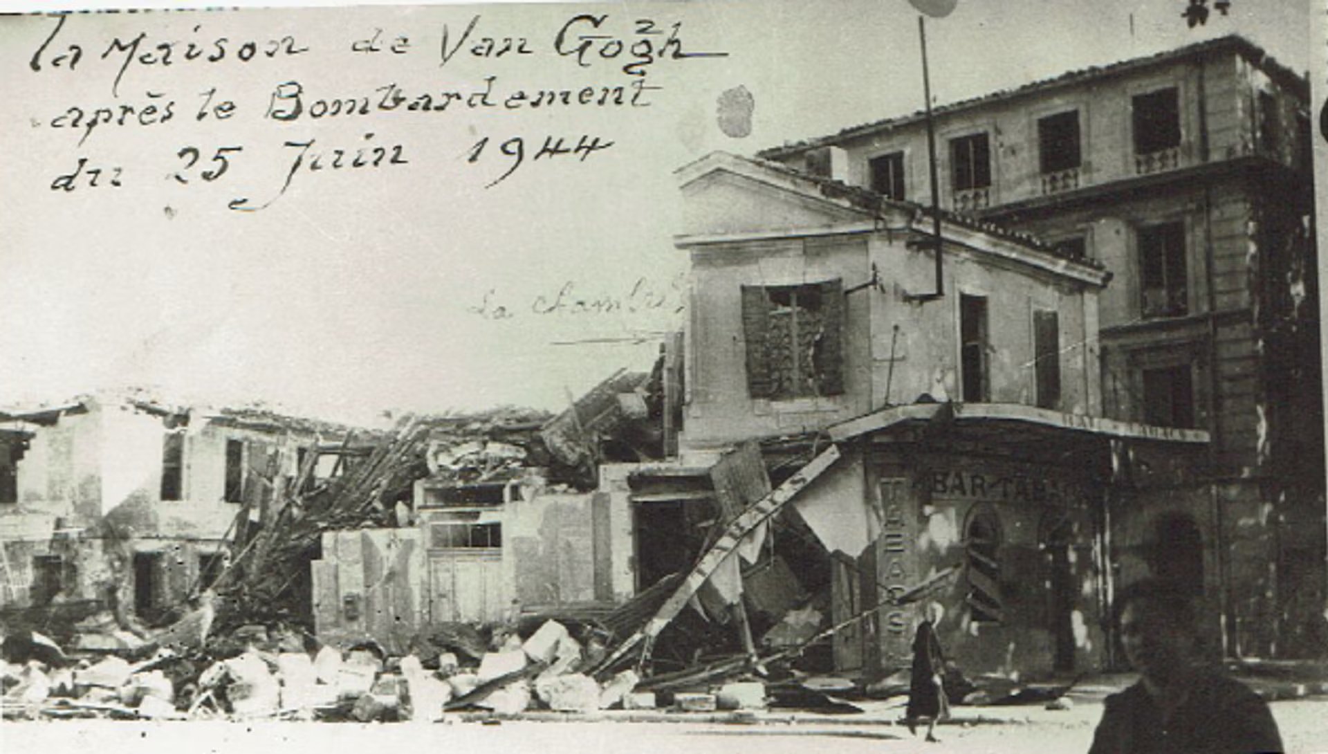 On 25 June 1944 American bombers launched an attack on Arles. Place Lamartine, located close to the strategically important station and rail bridge across the Rhône, was devastated. The former grocery shop was completely destroyed and the Yellow House was severely damaged.