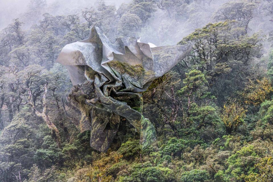 A screwed-up piece of paper can hold serious meaning. In 1995, Martin Creed scrunched a sheet of A4 into a ball and presented it as a sculpture. Meanwhile, in photomontage, the technique adds texture and narrative, tapping into feelings of conflict, disruption or frustration. Now, in Topographies of Fragility, a series nominated for both the Prix Pictet 2025 and the Aesthetica Art Prize in 2022, Ingrid Weyland (b. 1969) harnesses it as a metaphor for humanity’s impact on nature. Here, it “represents our destructive marks on the landscape.” The Argentinian artist depicts forests, mountainscapes and icebergs, spanning the Arctic to Cape Horn. Each scene is overlaid with a creased, twisted version of the same location. “It at times feels like a tribute and possible farewell to the havens these places provide. I invite viewers to reflect on our fragile yet resilient relationship with the land. Once crumpled, my print will always bear its marks. Our Earth will retain our actions too.” ingridweyland.com | @ingridwey