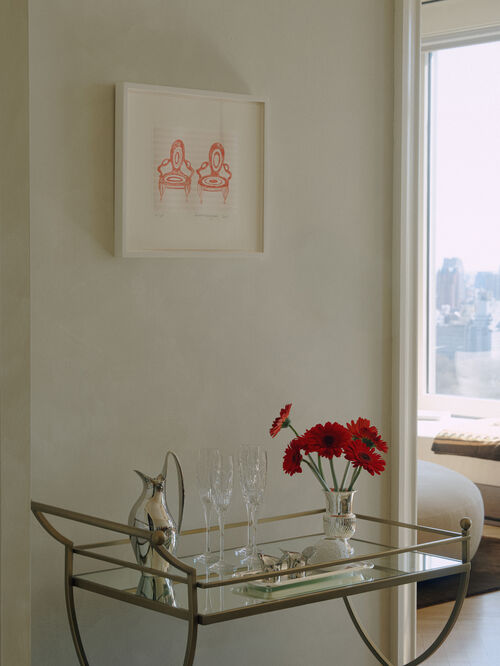 When they did begin collecting, the couple started ambitiously, with a large-scale photograph by German artist Andreas Gursky. Hong Kong Shanghai Bank II (2020), which depicts the HSBC building in Hong Kong at night, is nearly the same view as the one from her husband’s old office in the city. Another of the clearest expressions of Xu-Martinez’s collecting ethos came through a print: Louise Bourgeois’s Twosome (2005), a small work showing two red chairs side by side. She bought it as a Christmas gift for her husband after being reminded of the red chairs at a Pacific Coffee in Hong Kong, where the two used to sit together early in their relationship. “It became our spot,” she said.