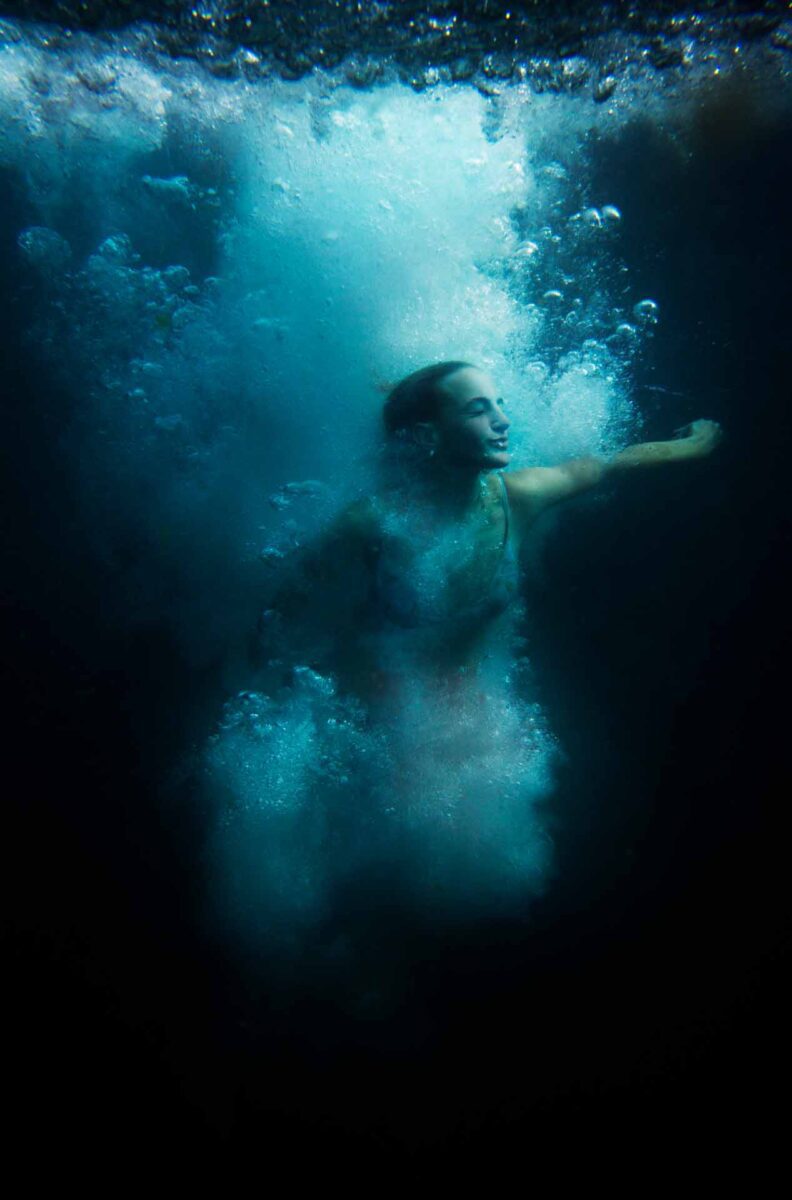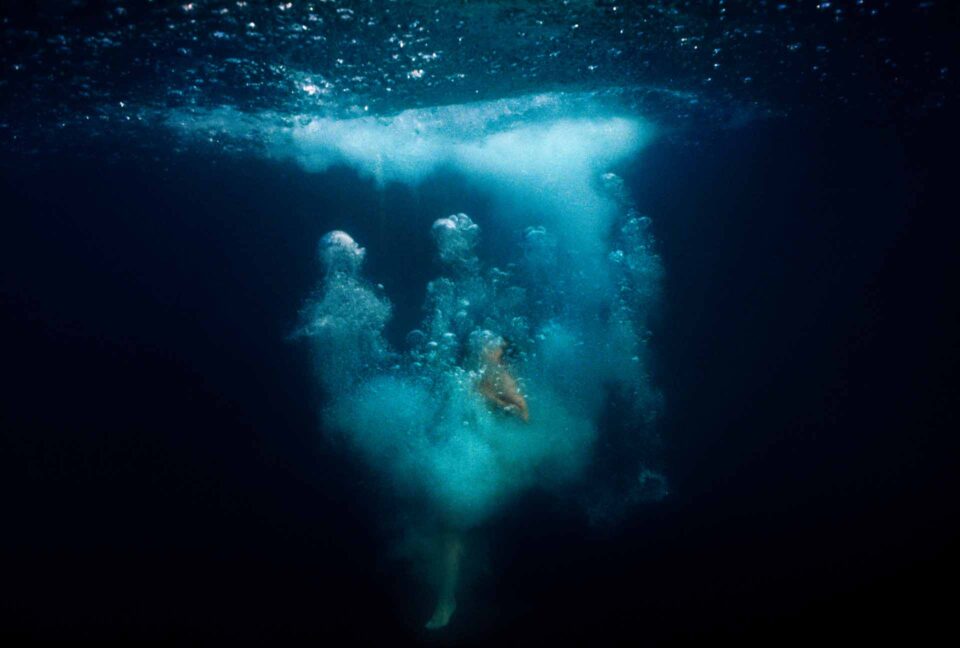 The Eyes of Her pushed these ideas a little further and takes inspiration from my own experiences. I shot this with a digital Leica in a housing; having a motor drive allowed me to capture more of the moment. I was able to see the swimmers emerge from the bubbles. They were reminiscent of ships’ figureheads, as they headed back to the surface.