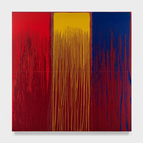 Steir sustained a decades-long practice that explored abstraction through repetition, balancing control with chance happenings. She poured paint onto giant canvases from the top of a ladder or lift to create her colorful, asynchronous paintings. Throughout her career, she welcomed the chaos as a way to teach herself and discover something new. “Learning means putting one foot in front of the other,” she told Artsy in an interview pegged to her show at Hauser & Wirth Los Angeles in 2024. “Sometimes you don’t learn correctly and make a misstep; other times you learn correctly and find a beautiful way.”