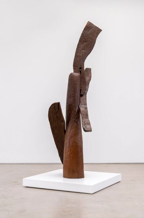 A major institutional survey of Mosley’s work opened at the Baltimore Museum of Art in 2021, following his participation in the Carnegie International. That exhibition, titled “Thaddeus Mosley: Forest,” traveled to Art + Practice in Los Angeles and the Nasher Sculpture Center in Dallas. And in 2025, Public Art Fund invited the artist to present a selection of bronze sculptures in the park outside City Hall in New York. His work is held in the collections of museums including the Art Institute of Chicago, the Brooklyn Museum, the Whitney Museum of American Art, and the Guggenheim Museum.