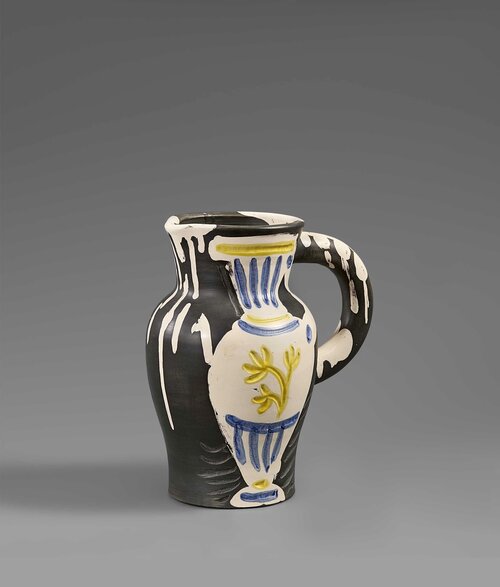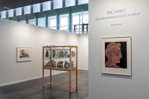 The gallery is also showing other Picasso ceramics, from owl-like jugs to urns with smiling faces, priced from €6,200 to €68,000 ($7,276–$79,807). Displayed in a vitrine at the front of the booth, they include both editioned and one-of-a-kind works. Three had already sold on the fair’s preview day.