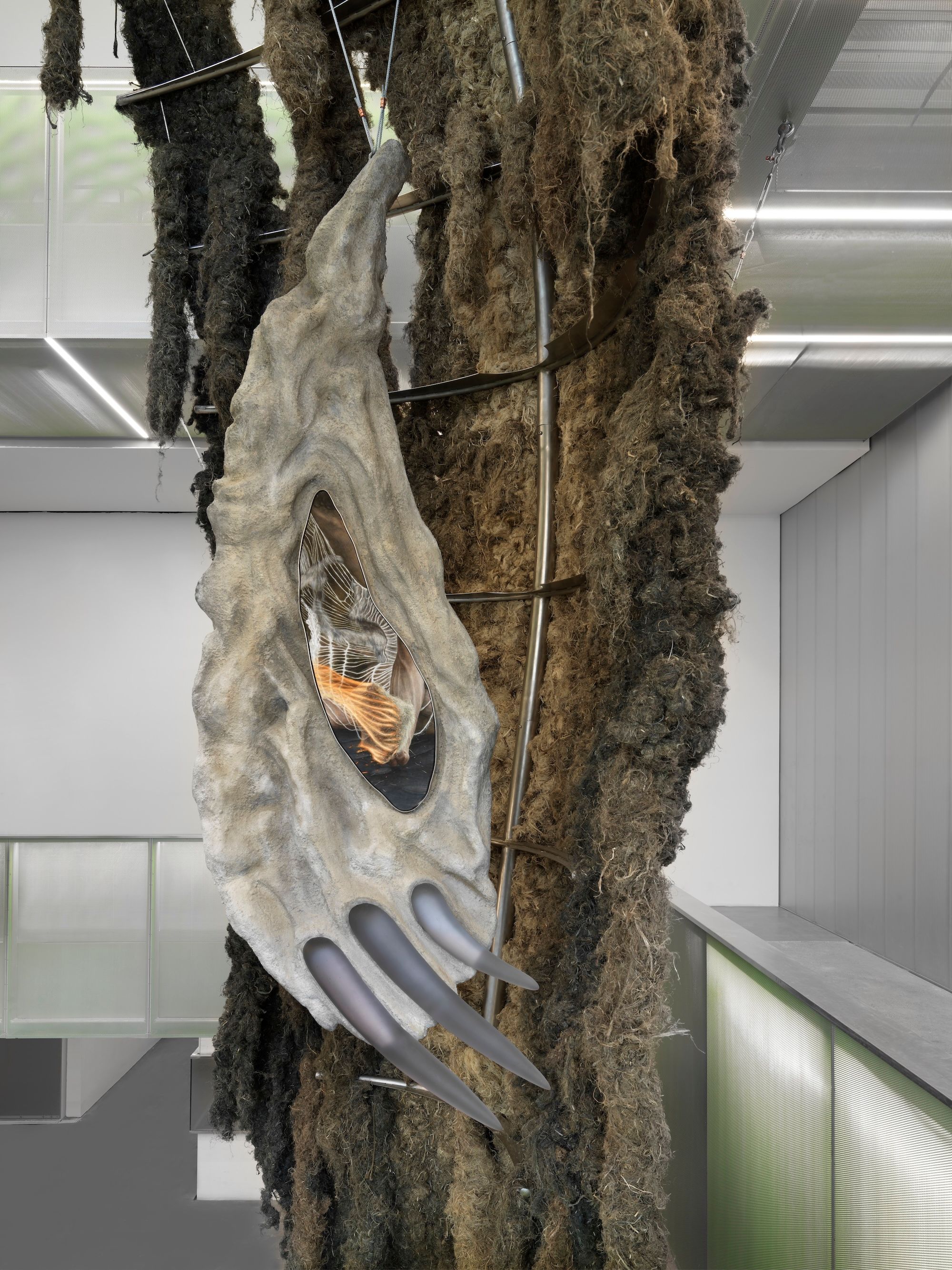 A view of Klára Hosnedlová’s Shelter (2026) coming up the stairs Photo: Jason Keen, courtesy New Museum
