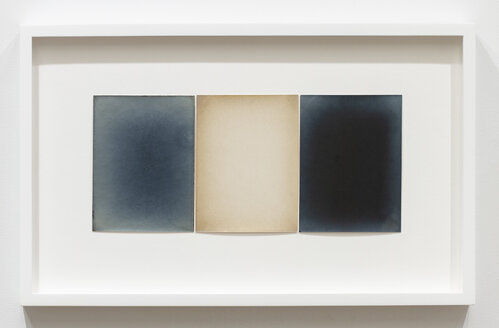 Rossiter now collects and processes photographic papers from every decade of the twentieth century. She mounts these papers in frames and further honors them as she researches what happened at the moments of their production and expiration. Rossiter’s practice has allowed her to “stumble into both abstract photography and the history of photographic industrial production,” she said. “My unique prints are abstract records of time,” she said.