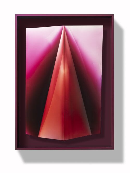 Marshall Gallery, for instance, is showing chromogenic photograms by Fabiola Menchelli, which the artist folds into geometric abstractions in sculptural relief. They’re imbued, says Papaefthemiou, “with color and light streams, both referring to the origins of camera-less photographic works while expanding the bounds of our familiarity with this process.”