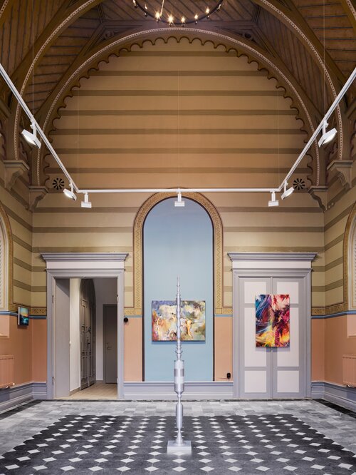 “The scale, the light, and the verticality all invite a different kind of exhibition-making,” Giunta told Artsy of the space, designed by Swedish architect Helgo Zettervall. “It allows for things to slow down a bit, and the work can hold space rather than compete for it.… For the artists, it creates an opportunity to think beyond standard gallery formats.”